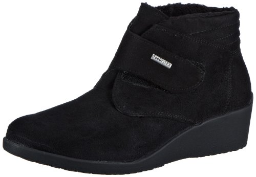 Romika Aqualight 02 are a stylish wedge heeled ankle boot which are bang on trend this season, and are perfect for casual day wear or even nights out Made with a silky smooth black fabric upper and built with a TopDryTex membrane which make them completely waterproof, finished with a crossover velcro fastening for easy on and off and a secure fit Velvety soft faux fur linings ensure feet are kept warm and snug in the cold winter months Built with a 2 inch wedge heel for a slight height boost, finished with a hard wearing textured PU sole adding excellent grip